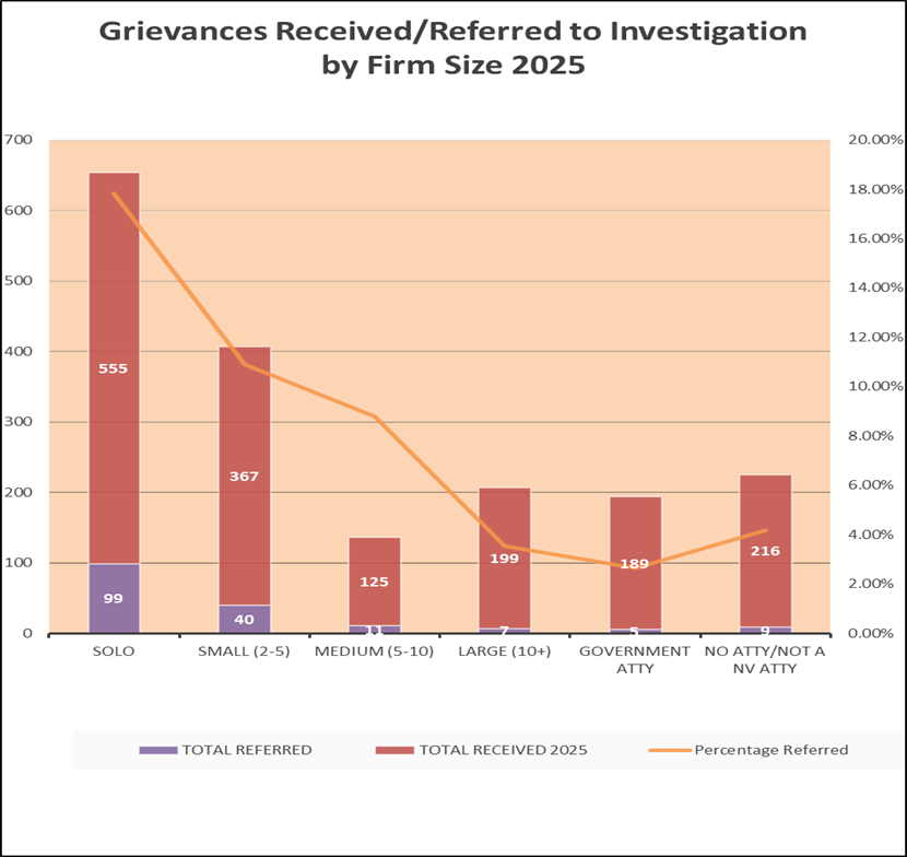 Pretty useless chart without percentages comparing how many attorneys in NV are solo, government, etc. It could be that solos make up a far larger percentage of practioners so as to make their comparative complaints and referrals very small.
